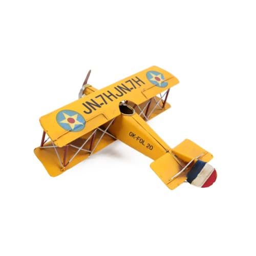 Çift Kanat Metal Uçak MaketiÜrün ÖzellikleriSavaş Uçağı modelidir.Vintage tarz olup, eskitme yapılmıştır.Tamamı metal malzemeden üretilmiştir.El yapımı ve el boyamasıdır.Çift kanat özelliği mevcuttur.Dekoratif amaçla kullanılır.Oyuncak değildir.Ürün Ebatları Uzunluk : 21 cm Genişlik : 25 cm Yükseklik: 9 cm