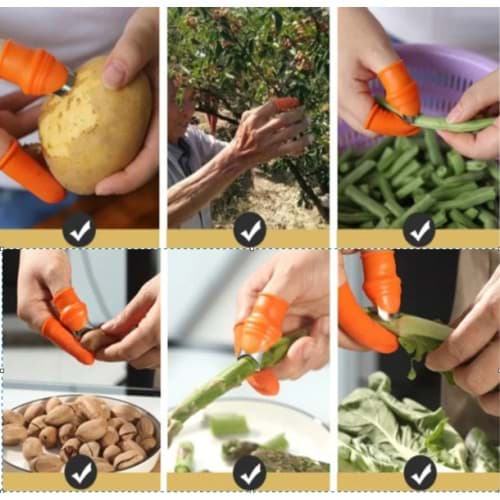 Baş parmak koruyucu soyucu ayıklayıcı kesme eldiveni bahçede, mutfakta sebze meyveleri soymak için kullanılır.Bahçe işlerinizde meyve sebze koparırken parmaklarınızı korur ve kesip koparmanıza yardımcı olurMutfakta sarımsak, sebze ve benzerlerini soymak için kullanılırGiyilebilir kısmı kaliteli silikon malzemeden üretilmiştirM Beden Set Boyutlar: 2.8*4.8*2.1cm Baş Parmak6cm * 1,8 cm 5 Adet Orta Parmak