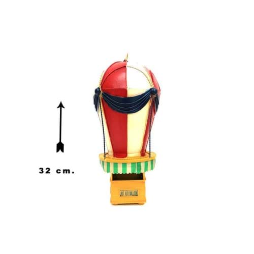 EL BAKIMI DEKORATİF SICAK HAVA BALONUÜrün ÖzellikleriObje Sıcak Hava Balonu modelidir.Vintage tarz olup, eskitme yapılmıştır.Tamamı metal malzemeden üretilmiştir.El yapımı ve el boyamasıdır.Dekoratif amaçla kullanılır.Oyuncak değildir.Ürün EbatlarıUzunluk : 14 cmGenişlik : 14 cmYükseklik : 32 cmPaket İçeriği 1 Adet El Yapımı Dekoratif Sıcak Hava Balonu