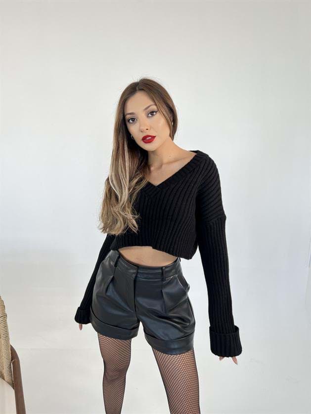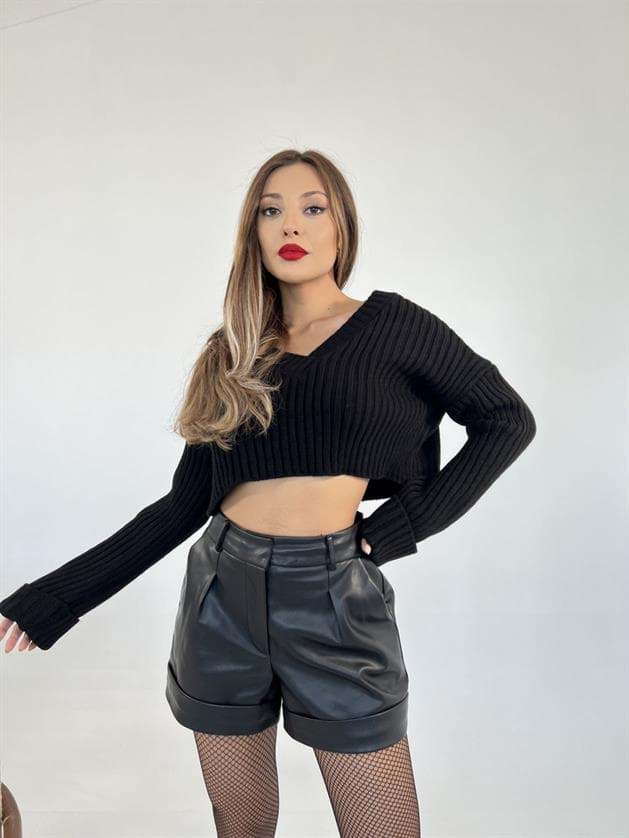 • 3921 TRİKO V YAKA CROP-SİYAH resmi
