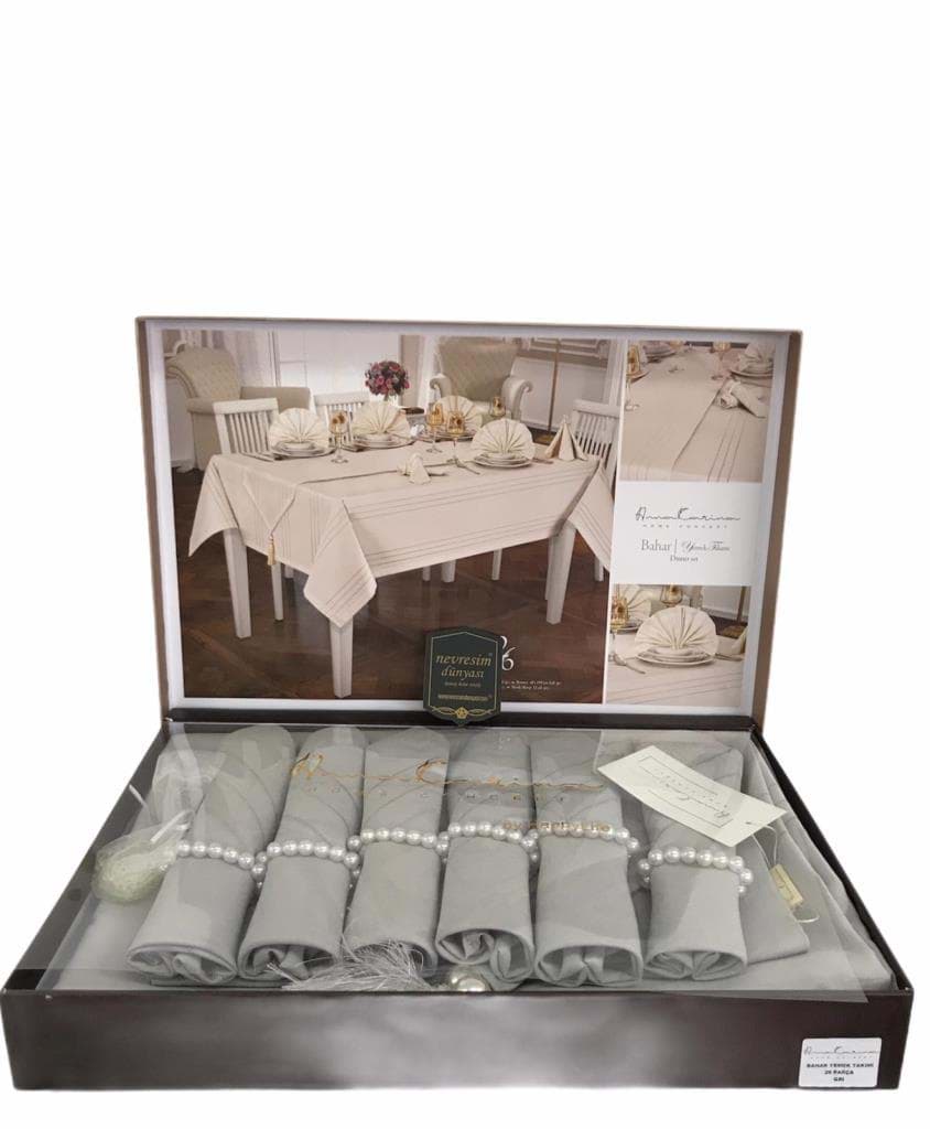 Anna Karina 26 Parça Masa Örtüsü Seti Bahar Gri