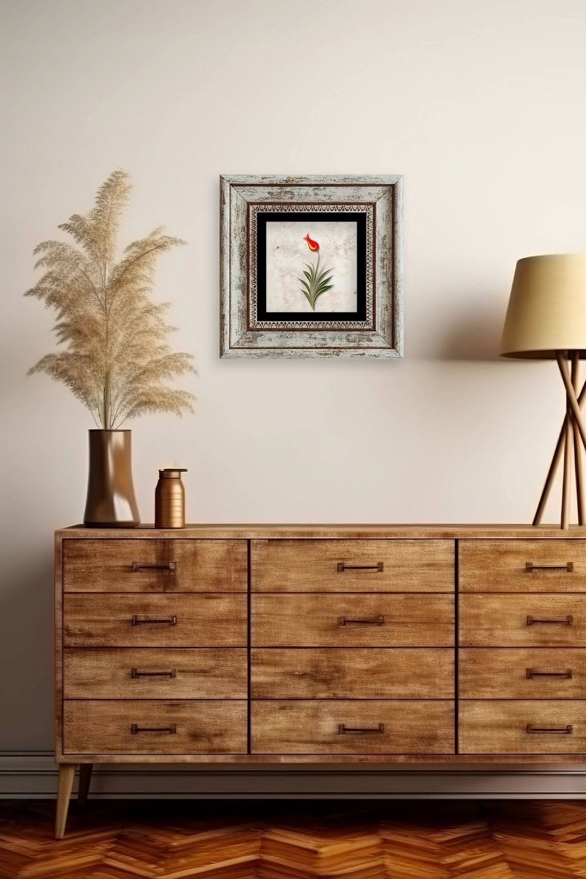 Ebru Lale Çerçeveli Taş Tablo