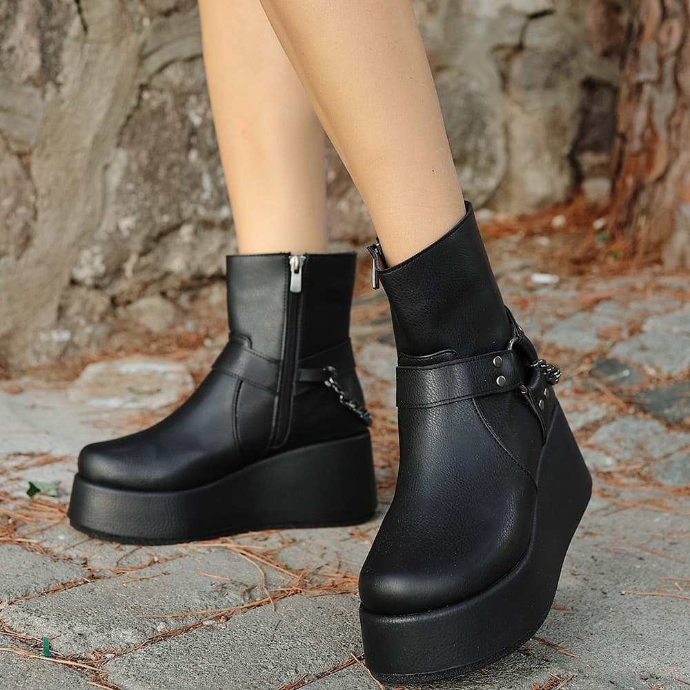 Detay: Dolgu Topuklu Yandan Fermuarlı Bot