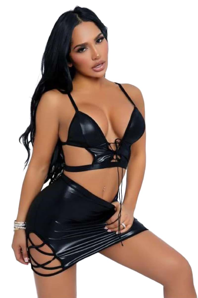 Deri Kostüm, yüksek kaliteli deri malzemeden üretilmiştir ve sizi vahşi ve güçlü bir şekilde sarar. Özel kesimi ve zarif detaylarıyla figürünüzü mükemmel bir şekilde vurgular ve sizi kışkırtıcı bir silüetle sarmalar. Harness detayları ise cesur ve fetiş bir ifade sunar, deri iç giyimiyle birleşerek unutulmaz bir görünüm yaratır.