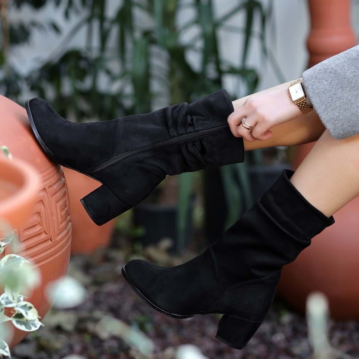 Detay: Topuklu Yandan Fermuarlı Körüklü