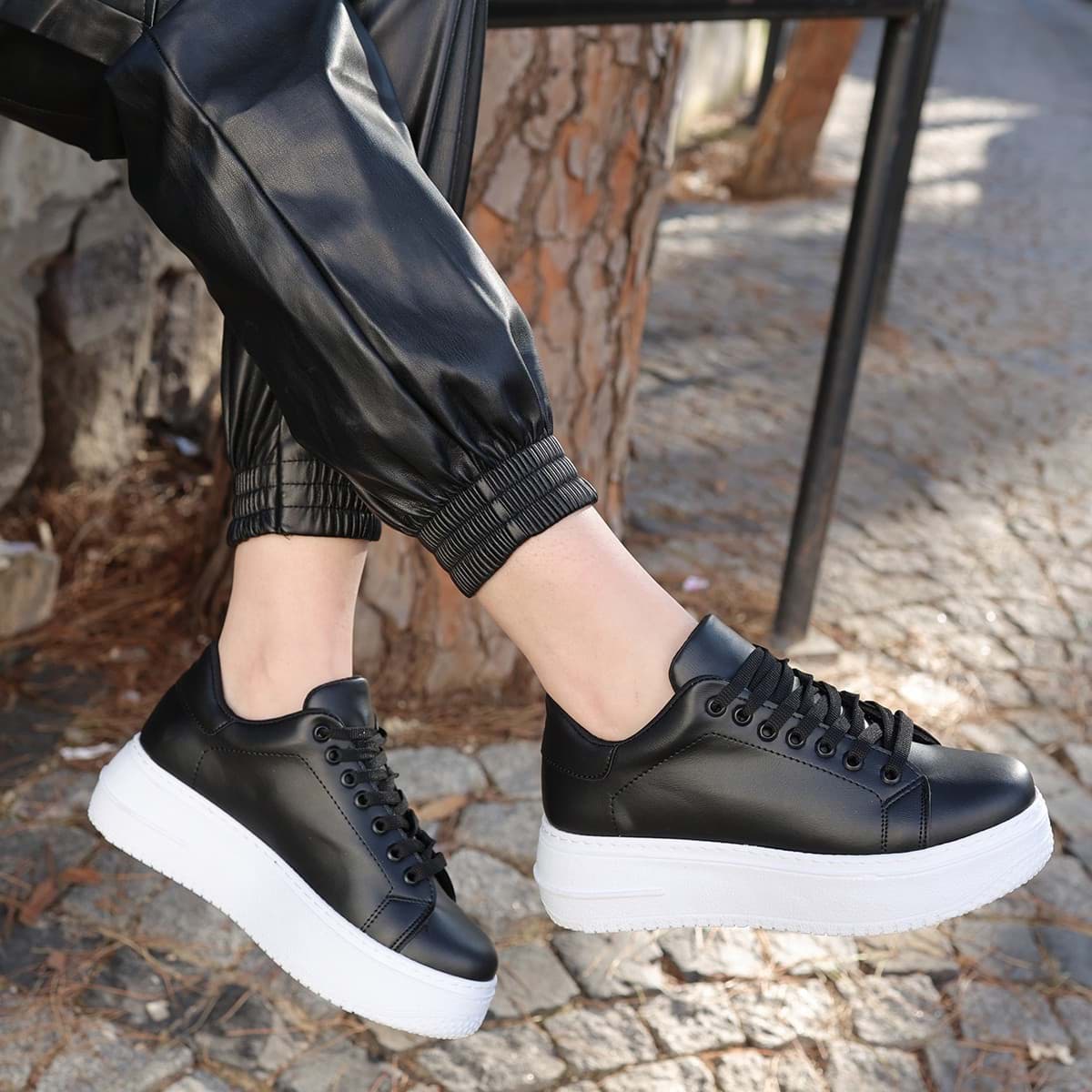 Picture of Lerran Black Skin White Based Laced Sneakers