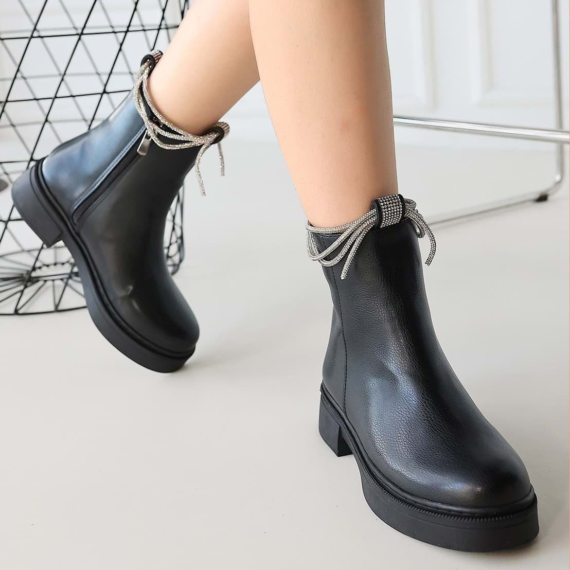 • Descriptionrenk: black detay: heels on the side zipper bot topuk length: 3 cm. Taban material: poly base iç material: Pad's inner base.