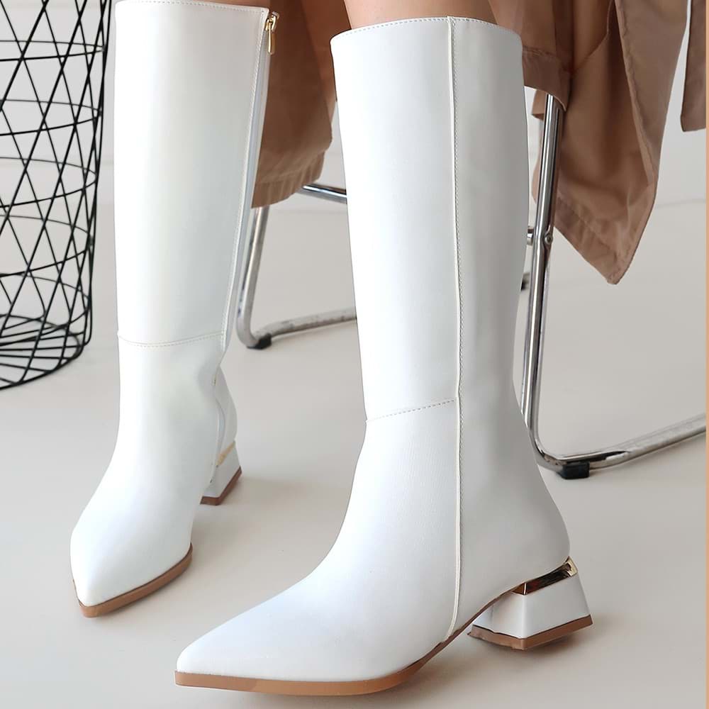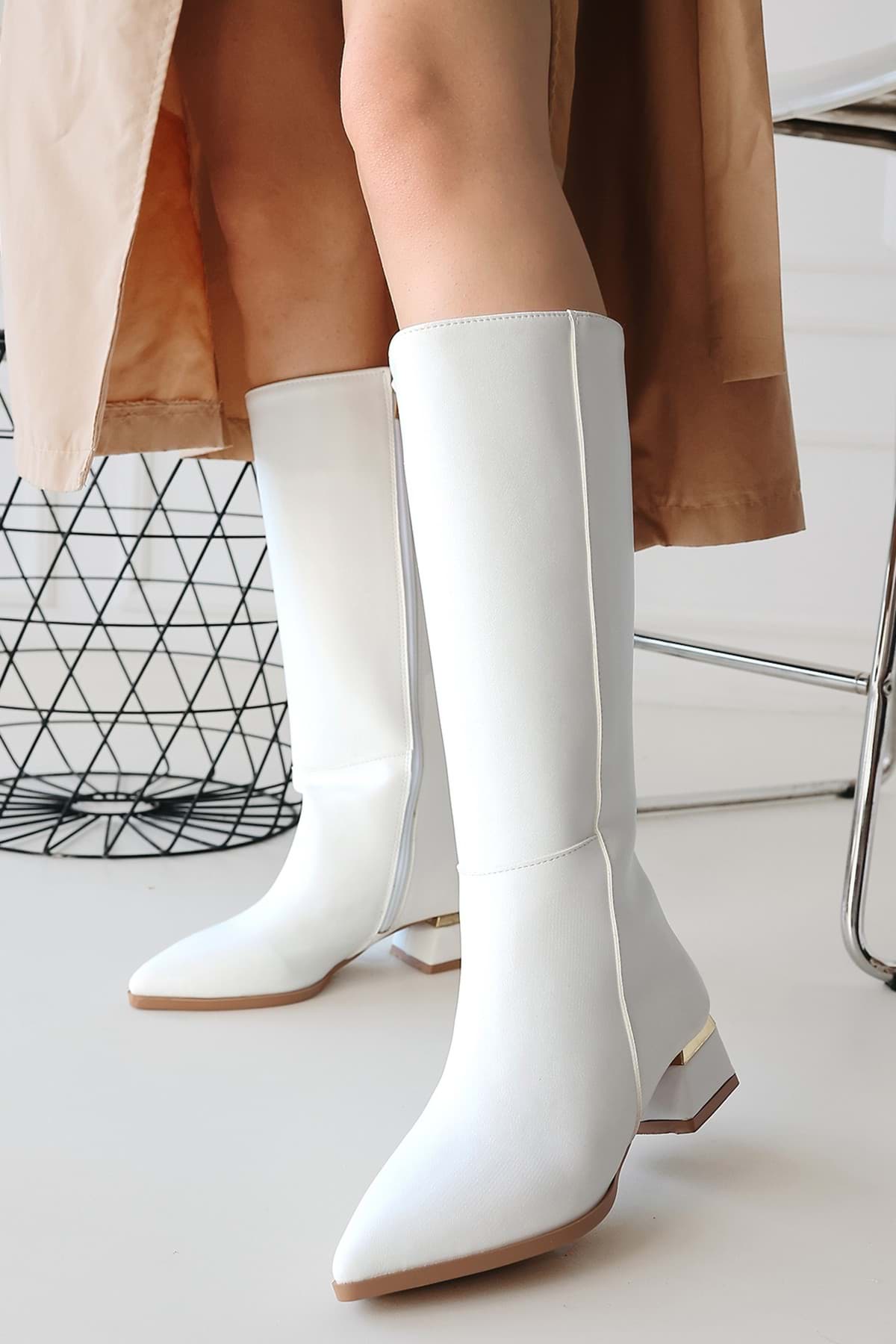 Detay: Topuklu Yandan Fermuarlı Diz Altı Çizme