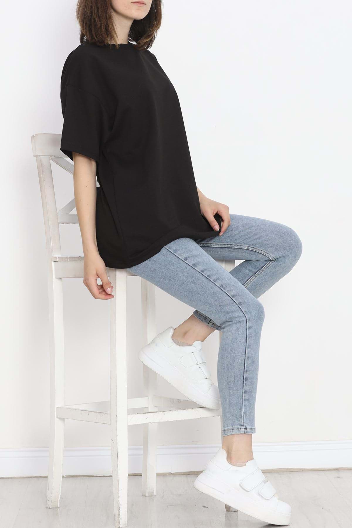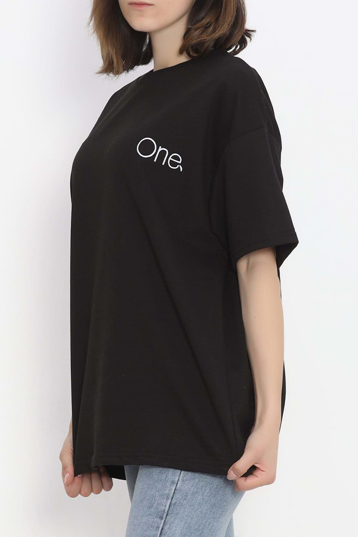 Nakışlı İki İplik Tişört Siyah - 18745.751. resmi