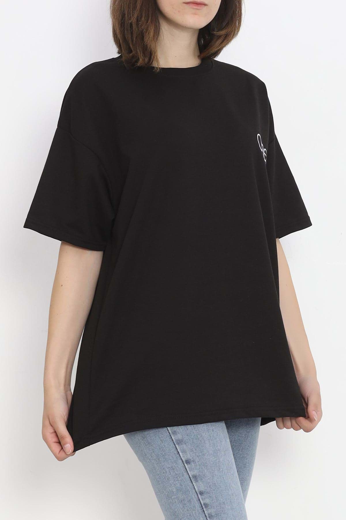 Nakışlı İki İplik Tişört Siyah - 18745.751.