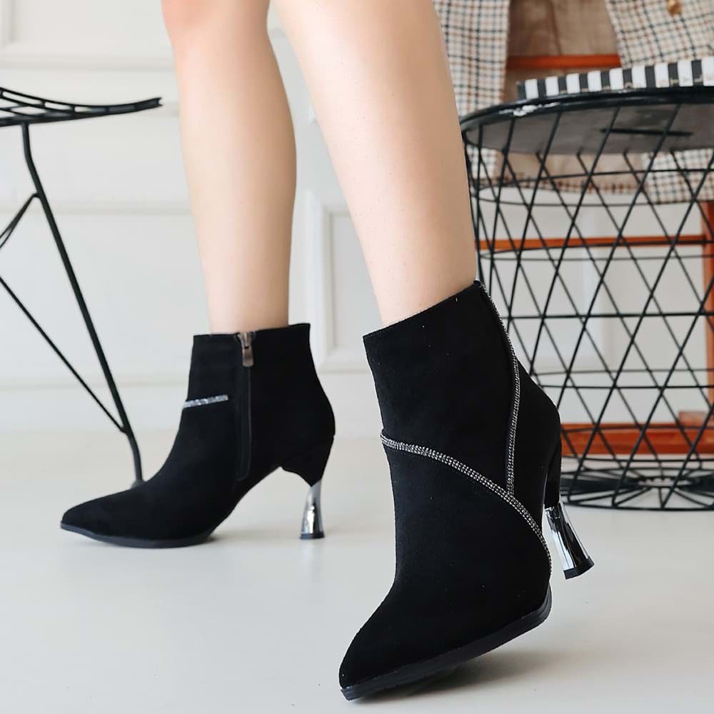 Olija Siyah Süet Topuklu Bot