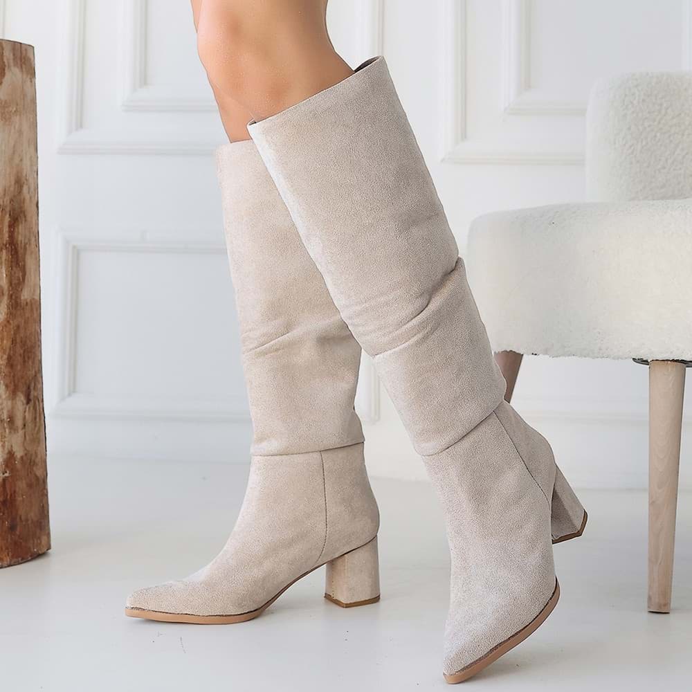 Detay: Topuklu Diz Altı Körüklü Çizme