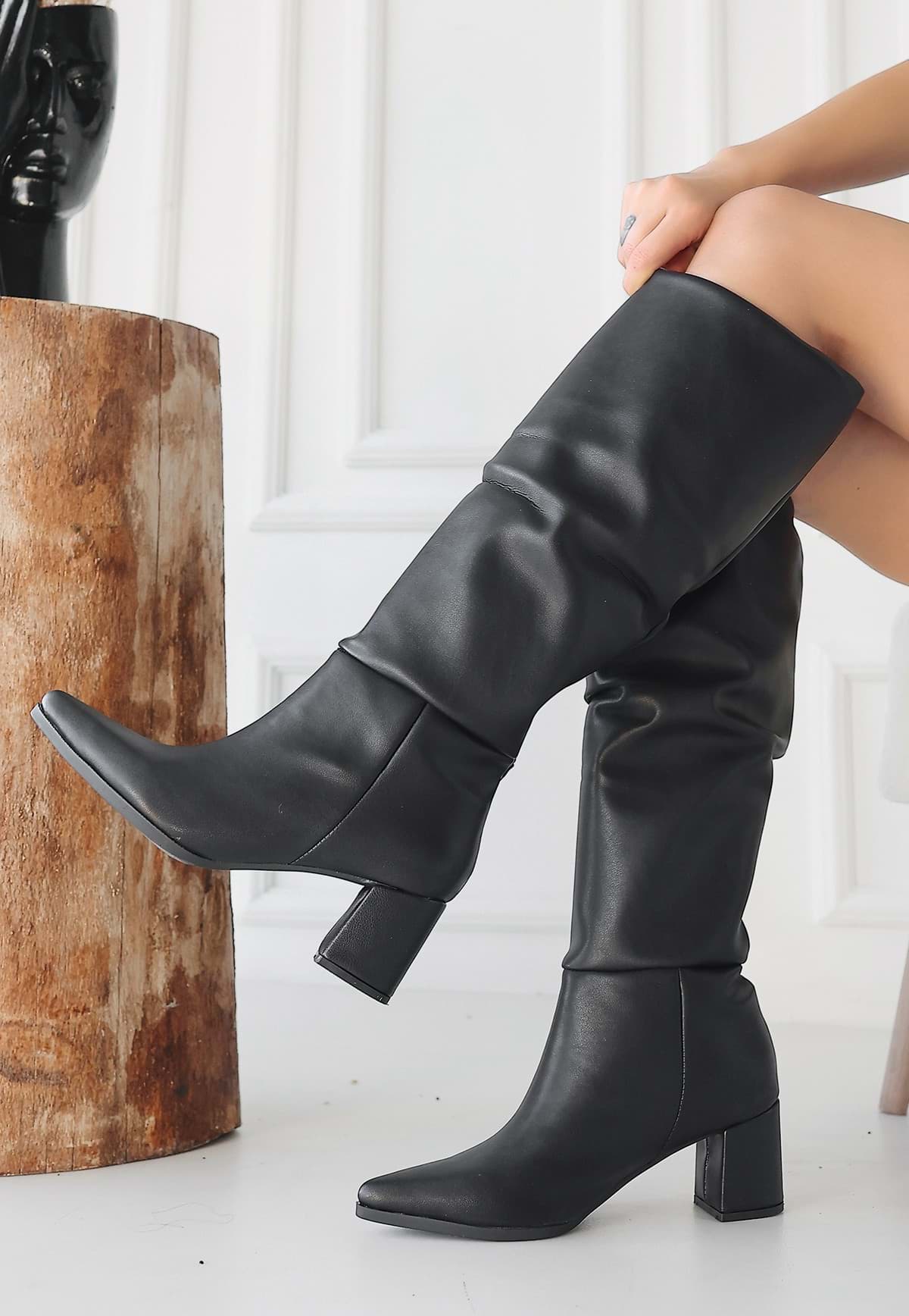 Detay: Topuklu Diz Altı Körüklü Çizme