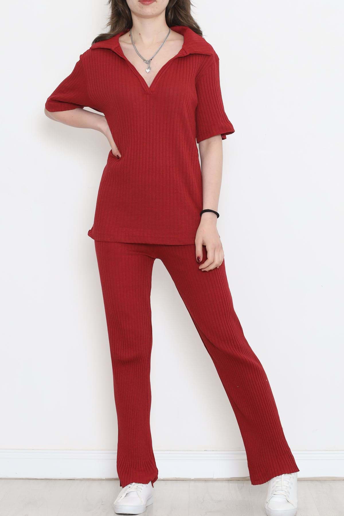 Polo Yaka Fitilli Takım Bordo - 18497.1567.