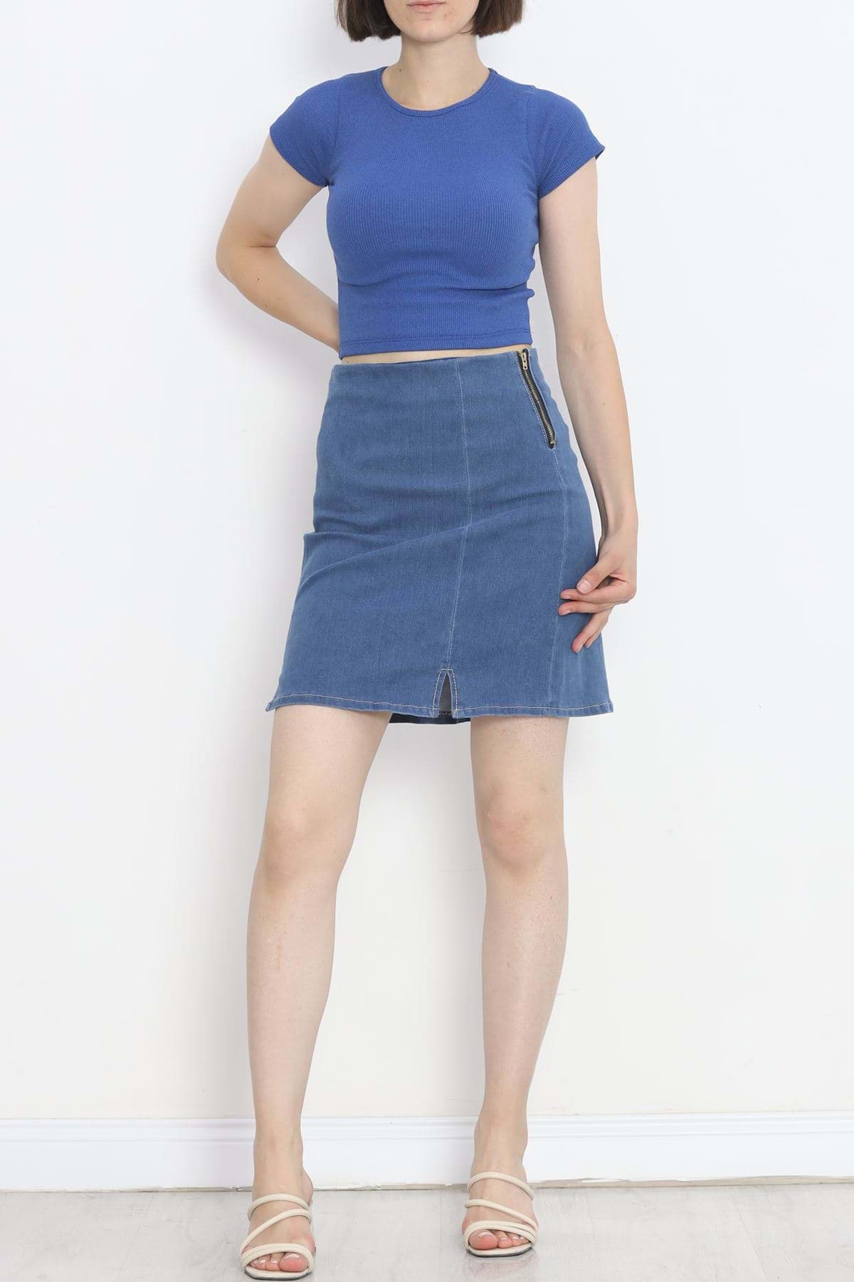 Yırtmaçlı Kot Etek Mavi - 18763.1184.